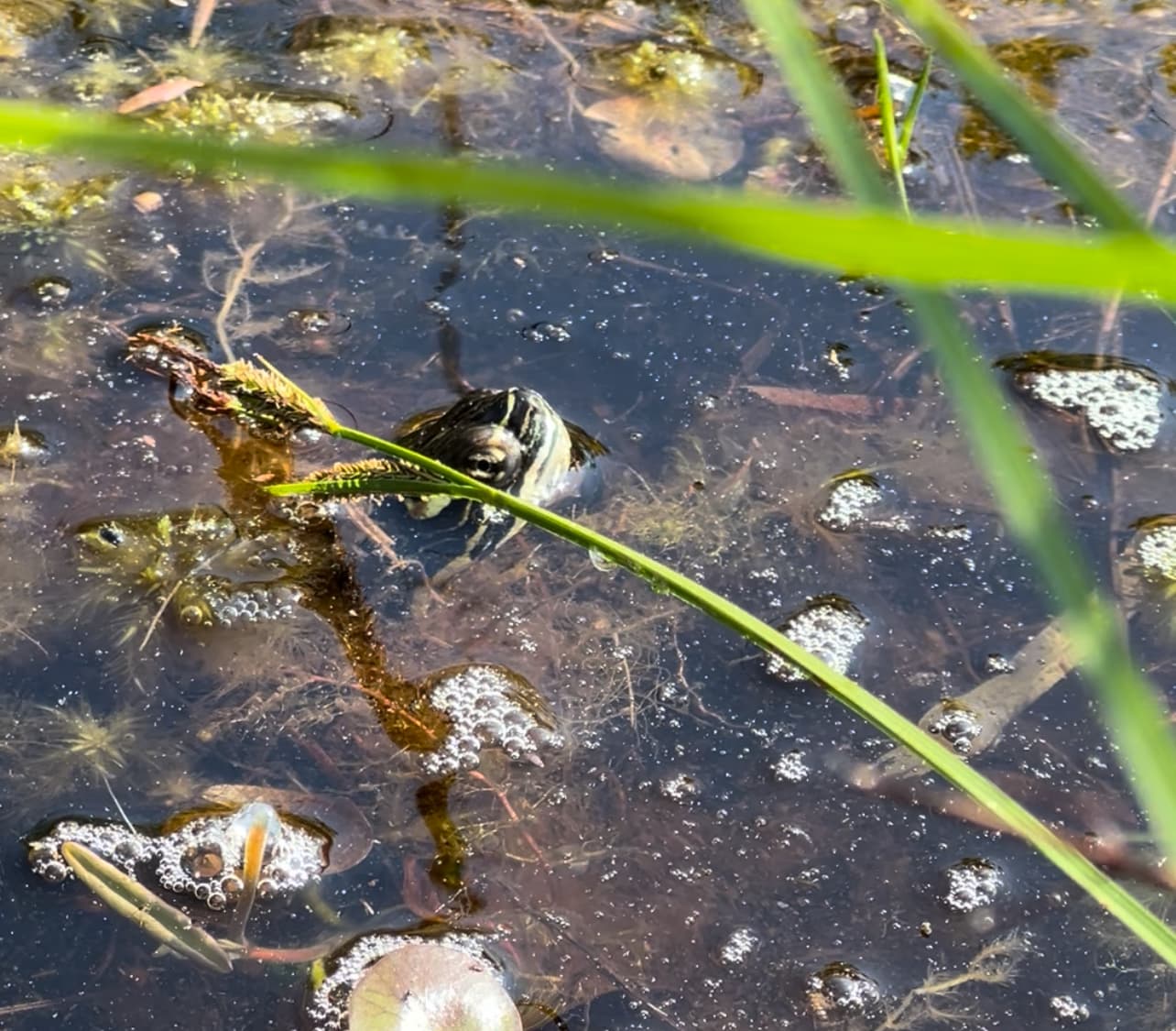 Fang is an adult male painted turtle admitted in May 2023. He was admitted after being found hit by a car, and sustained severe injuries to his top shell (carapace) and bridge. He spent the winter with us healing from his injuries, and we returned him to his home wetlands in spring 2024!